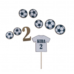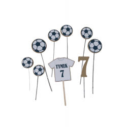 Toppery na tort piłkarski : 7 piłek, cyfra złota i koszulka z twoim imieniem i cyfrą