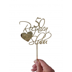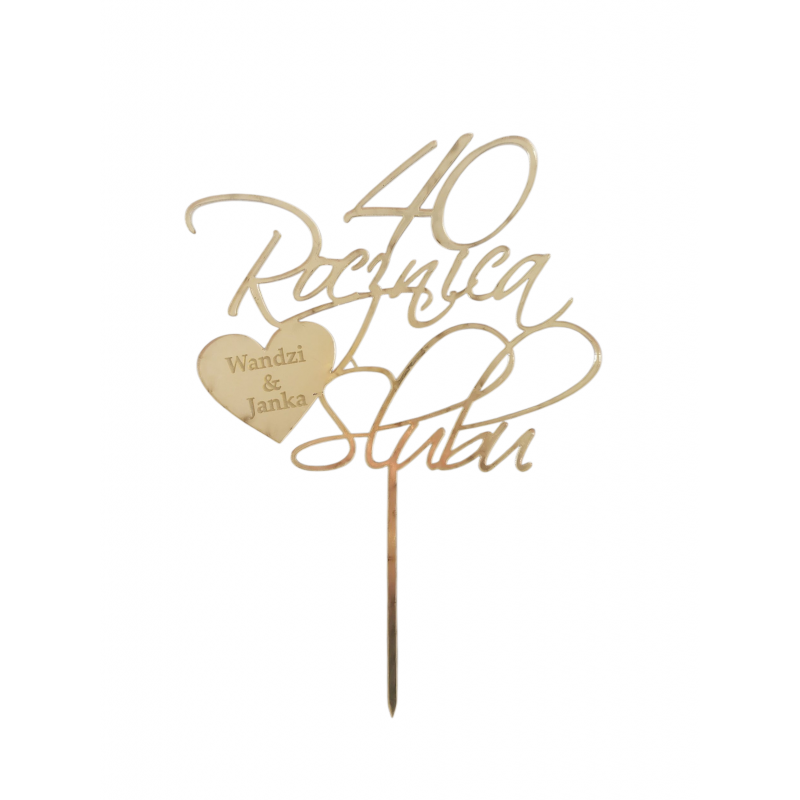 Topper na Rocznicę Ślubu z imionami grawerowanymi w sercu - dowolna cyfra.