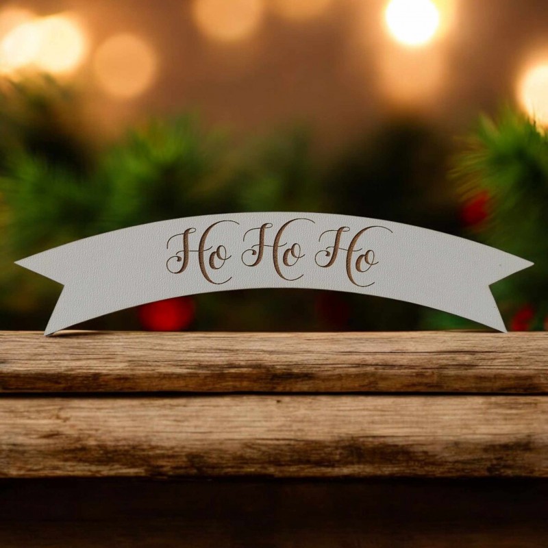Tabliczka z grawerowanym napisem Ho Ho Ho na wianek świąteczny.