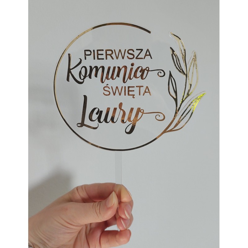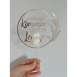 Topper przeźroczysty Komunia Święta listki plexi