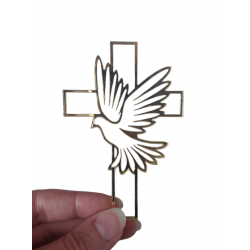 Dekor krzyżyk krzyż z gołębiem linearny delikatny