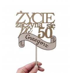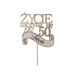 Topper życie zaczyna się po dowolna cyfra i grawerowany napis